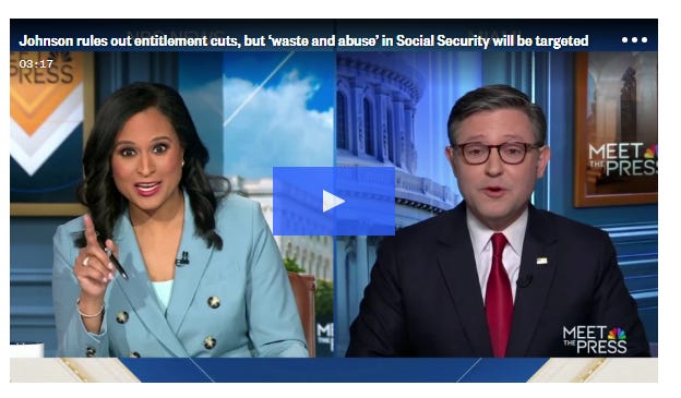 Asked whether Social Security is Musk and the Department of Government Efficiency’s next target, Johnson told Welker, “I’ve met with Elon about this multiple times. We meet late into the night in his office, and we’ve looked at that. What he’s finding with his algorithms crawling through the data of Social Security system is enormous amounts of fraud, waste and abuse.”