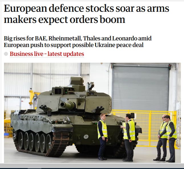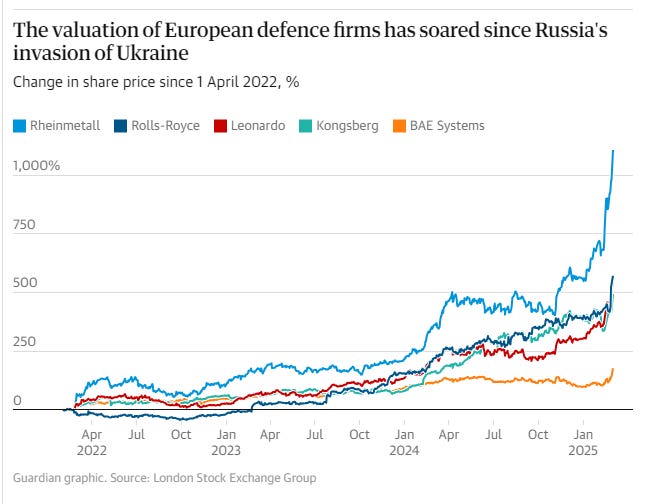 With European leaders scrambling to rearm and build a “coalition of the willing” to keep the peace in Ukraine if Kyiv can somehow reach a truce with the Kremlin, investors envisaged a mega-bonanza for the Continent’s war machine.