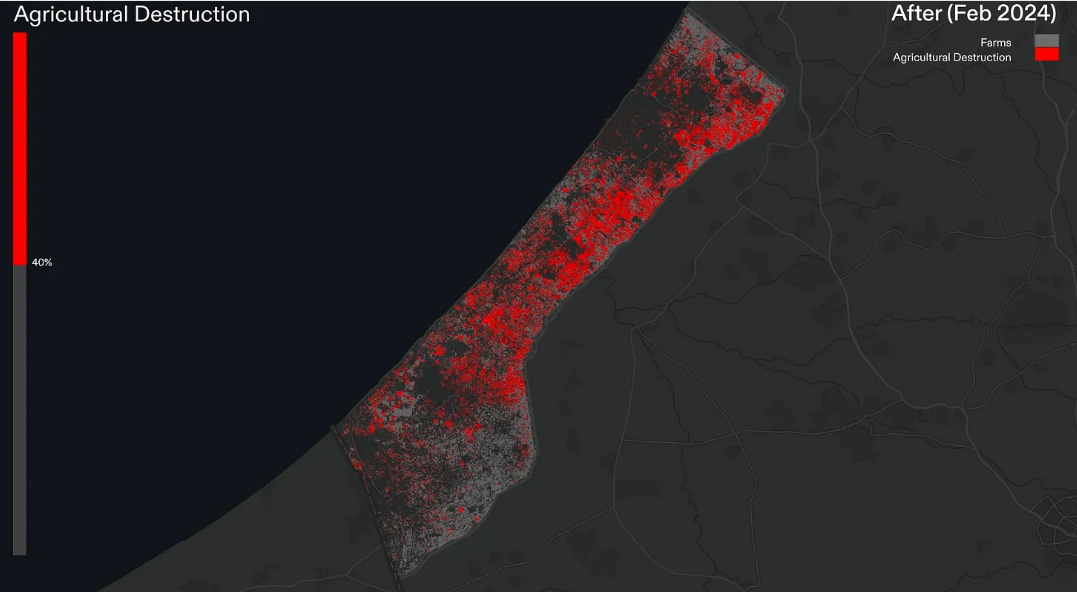 Following the “ceasefire” that went into effect January 19, hundreds of thousands of Palestinians in Gaza returned to their homes and land after months of forced displacement only to find an apocalyptic landscape. In addition to the destruction of homes, shops, bakeries, hospitals, universities, roads, and other civilian infrastructure, Israel has decimated almost all of Gaza’s agricultural capacity.