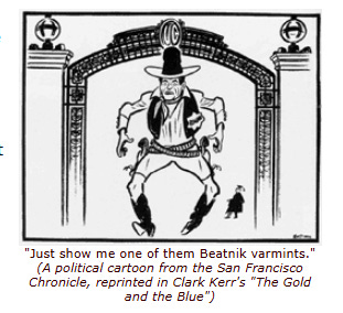Oh, Ray-Gun: “At the request of the Berkeley mayor, Governor Ronald Reagan declared a state of emergency and sent 2,200 National Guard troops into Berkeley. Some of these guardsmen were even Cal students. At least one young man had participated in the riots, been shot at by police, gotten patched up, and then returned to his dorm to find a notice to report for guard duty. In the following days approximately 1,000 people were arrested: 200 were booked for felonies, and 500 were taken to Santa Rita jail.”