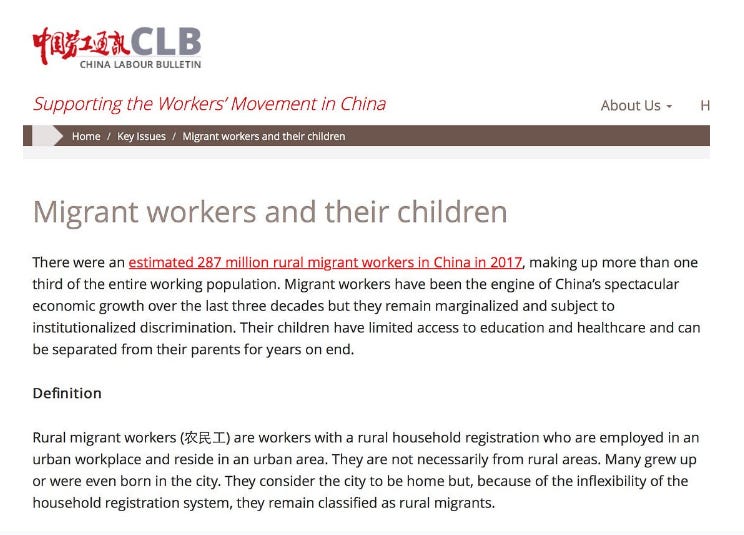 Unlimited Reserves of Cheap Labor: 287 Million Internal Migrant Workers