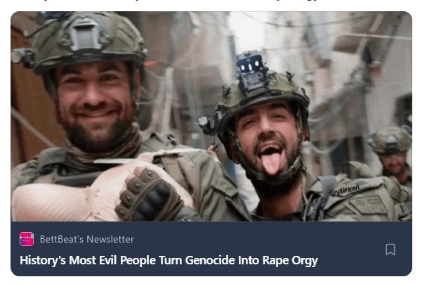 Can we call the cocksuckers in the murder brigades, the I.O.F., i.e. the Israeli Occupation Forces (hmm, not Z.O.F.) without a baton from Hegseth or Rubio or Trump up our asses.