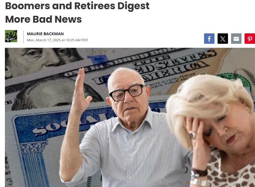 Now the good news is that Social Security is eligible for an automatic cost-of-living adjustment (COLA) each year, the purpose of which is to help beneficiaries keep up with inflation. The bad news is that 2025’s COLA wasn’t much to write home about. And also, it’s already falling behind inflation.