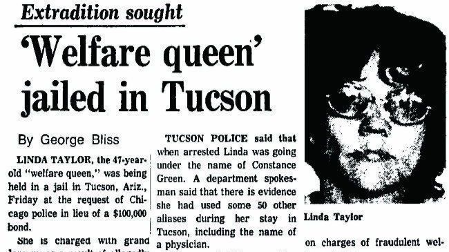A Chicago Tribune story by George Bliss calls Linda Taylor the “welfare queen” on Oct. 12, 1974.