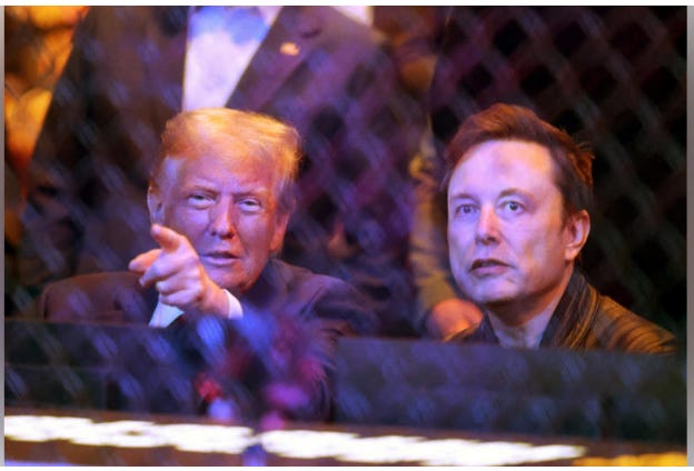 [ Trump talks with Elon Musk during UFC 309 at Madison Square Garden.]