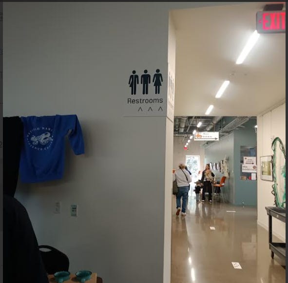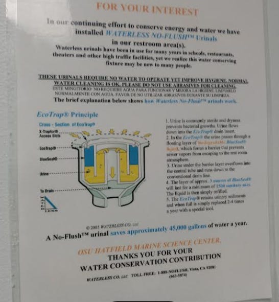 And, of course, one piss can, urinal, with this ecological wonder, saving 40,000 gallons of water a year, total fucking DEI, so VF Vance and South African Apartheid Cunts Musk and Thiel, and others, verbotten: