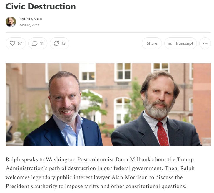 Just saying, just ranting, just fucking putting in two cents, over at Ralph Nader Raio, is bad bad bad, and seems to be the Jewish thing to be banned, blocked, sued, stopped, imposed upon.