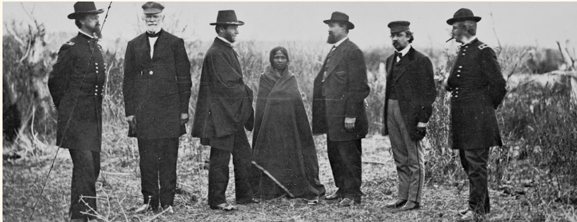 My search for the girl’s identity led me not just to her and her family but also to the women and children connected to the men who stand beside her: an orphaned Indian child adopted and sent back east, a famous mesmerist channeling the spirits of the dead, and an enslaved woman murdered by an enraged master. The search introduced me to a bilingual juggler in a Wild West show, an Irish teamster carting a scalped body, an ambitious Lakota lawyer, an angry wife who flees to Paris, and an angry husband who kills his wife in a Wyoming restaurant. The men in this photograph look different when we put them back into conversation with the people with whom they lived, talked, and fought. We may know them through their public deeds, but they also have private lives. We need to follow them home.