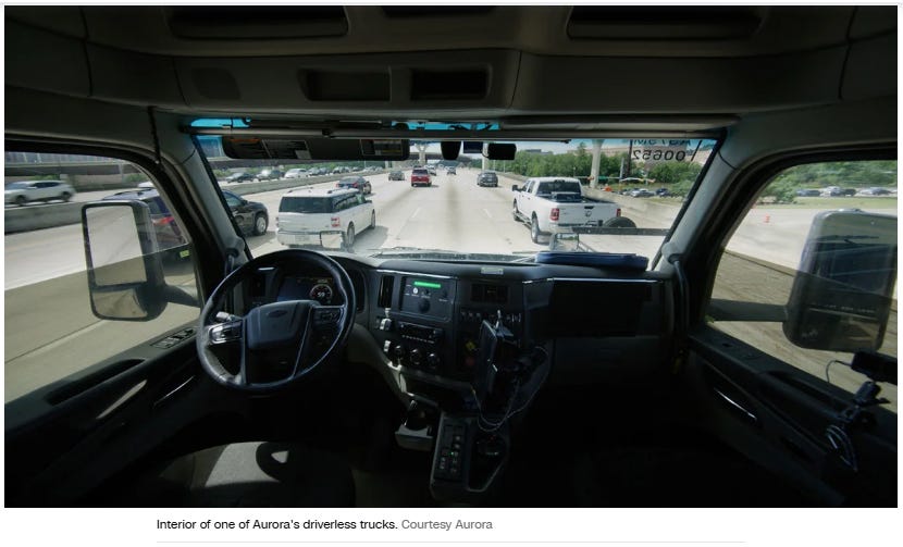 Jews and Your Uncle and Aunt’s jobs: The first driverless semis have started running regular longhaul routes