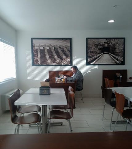 Super 8, MedfordOregon, 6:30 am and the old man is yammering to himself, triggered by me talking to North Arkansas Kelly.