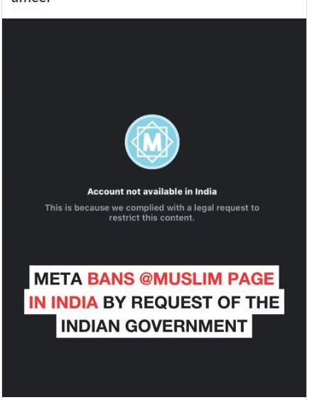 JEWS: Meta has banned the largest Muslim news page on Instagram in India at the behest of the government.
