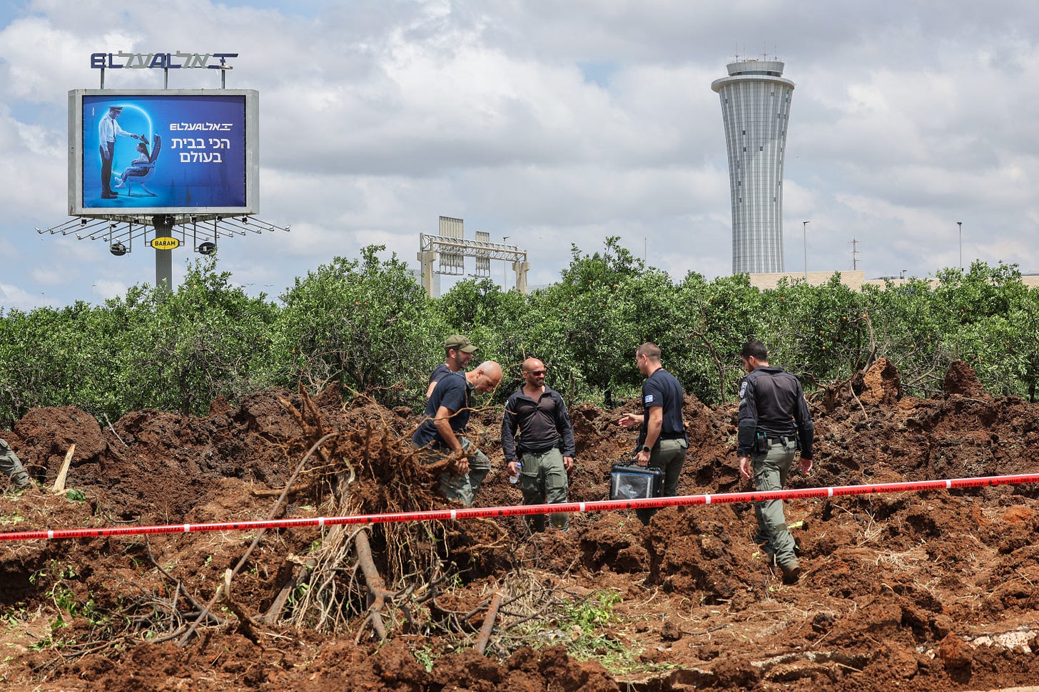 Jews: Dirty Jews … Israeli security services inspect a crater near a road outside Israel’s Ben Gurion airport after a missile launched from Yemen struck near Israel’s main international airport on May 4, 2025. (Photo by JACK GUEZ/AFP via Getty Images)