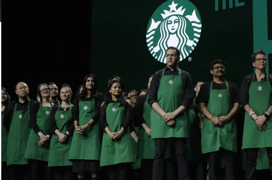 Yikes — Dress Codes, making the baristas look like fucking Nazi cooks, and, well, striking over the aprons. We are in some fucked up plasticized cunt licking times.