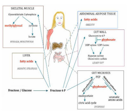 Amyotrophic Lateral Sclerosis (ALS) is a fatal neurodegenerative disease involving several protein mutations in glycine-rich regions with limited treatment options. 90-95% of all cases are non-familial with epidemiological studies showing a significant increased risk in glyphosate-exposed workers. In this paper, we propose that glyphosate, the active ingredient in Roundup®, plays a role in ALS, mainly through mistakenly substituting for glycine during protein synthesis, disruption of mineral homeostasis as well as setting up a state of dysbiosis. Mouse models of ALS reveal a pre-symptomatic profile of gut dysbiosis. This dysbiotic state initiate a cascade of events initially impairing metabolism in the gut, and, ultimately, through a series of intermediate stages, leading to motor neuron axonal damage seen in ALS. Lipopolysaccharide, a toxic by-product of dysbiosis which contributes to the pathology, is shown to be statistically higher in ALS patients. In this paper we paint a compelling view of how glyphosate exerts its deleterious effects, including mitochondrial stress and oxidative damage through glycine substitution. Furthermore, its mineral chelation properties disrupt manganese, copper and zinc balance, and it induces glutamate toxicity in the synapse, which results in a die-back phenomenon in axons of motor neurons supplying the damaged skeletal muscles.
