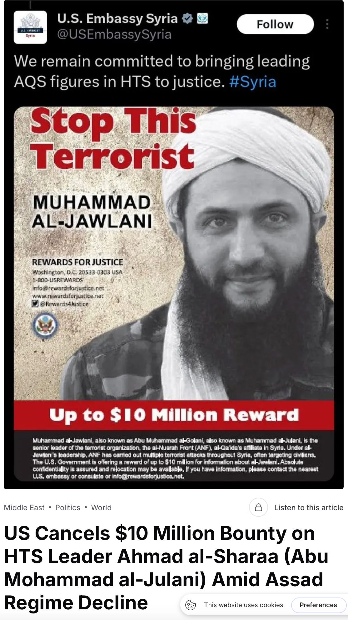 Rubio said this week, however, that the al-Sharaa government had suggested they are committed to the principles outlined by the international community – inclusive government, peace with their neighbors including Israel, and driving out terrorists. He also said that Syria would make efforts to rid the country of chemical weapons with assistance from the US.