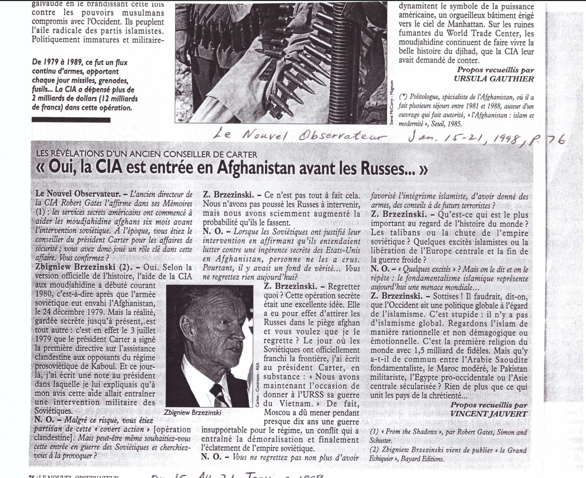 According to this Nouvel Observateur (1998) interview with Zbigniew Brzezinski, the CIA’s intervention in Afghanistan preceded the 1979 entry of Soviet troops.