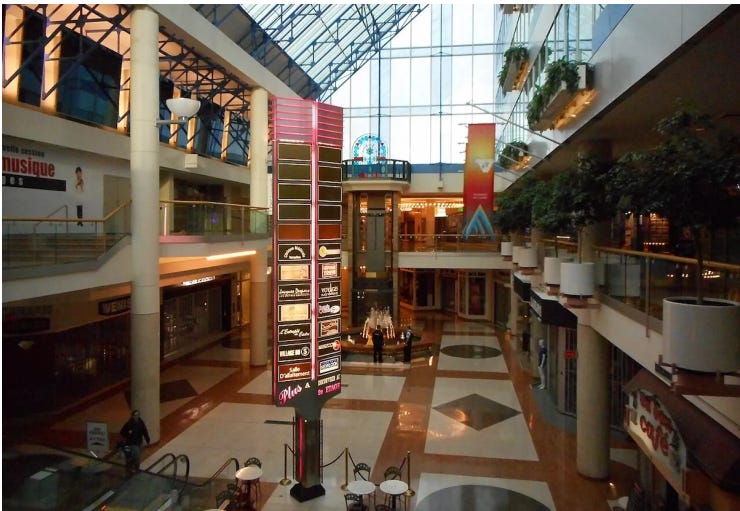 Finally — Interesting. And possibly a sign of how completely FUCKED up capitalism was and is. Malls? How many are there, and how underutilized are they, and the fucking parking lot footprint, car spaces enough for that busy Xmas shopping one week before Santa. Montreal readies to turn east-end mall into densified neighbourhood with green space: Place Versailles redevelopment project promises to have 6,000 apartments, school, hotel and parks