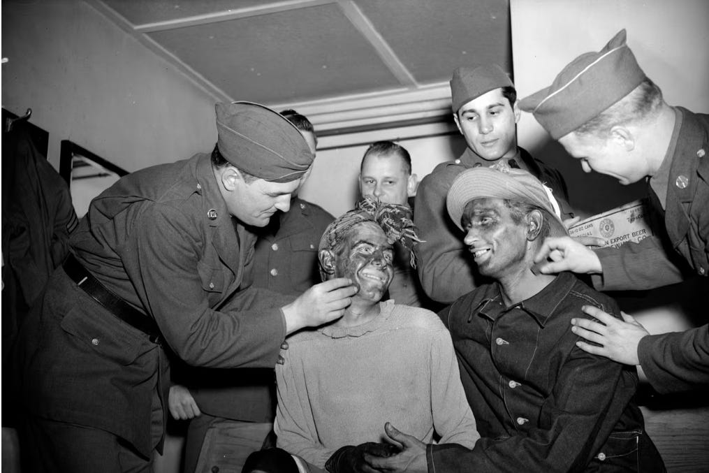 Jew in a uniform, skull cap, beard, armed, and those eyes, man, those evil eyes: