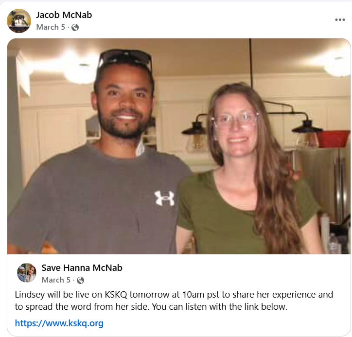 Please follow and share our page Save Hanna McNab.