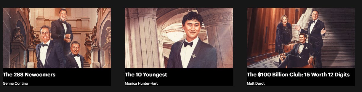 Forbes has been scanning the globe for billionaires since 1987. We found 140 of them that first year. It took two decades for their numbers to swell beyond 1,000. Then there were 2,000 in 2017. Now, eight years later, another milestone: 3,028 entrepreneurs, investors and heirs make up this year’s ranking, 247 more than a year ago. Not only are there more of them, but they’re richer than ever, worth $16.1 trillion in total—up nearly $2 trillion over 2024. The U.S. has a record 902 billionaires, followed by China (516, including Hong Kong) and India (205). We used stock prices and exchange rates from March 7, 2025. For daily updated net worths of all 3,028 billionaires, check out our real-time billionaires ranking.