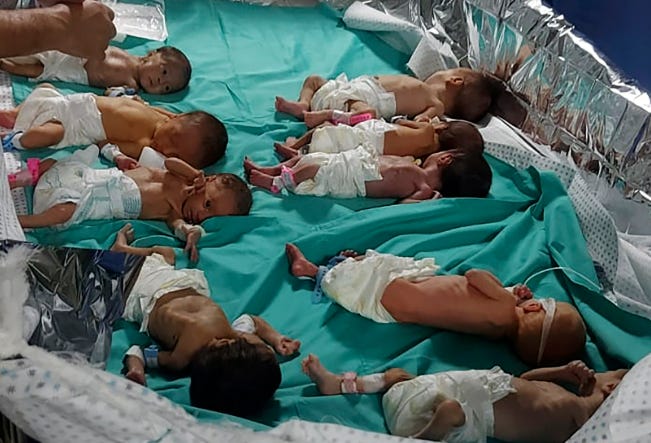 In the Hamas-Gaza War the image has become premature Palestinian babies struggling to live without incubators.