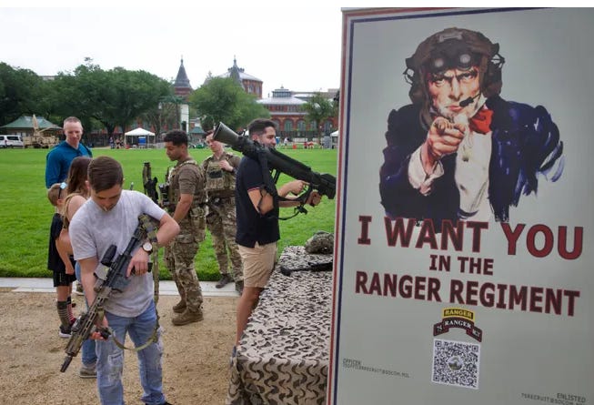 But . . . BUT. He fucking yammered on and on and on with Crocodile Tears (just like a Scott Ritter or Joe BiIden or George Bush gushes about America the Beautiful) about this great nation, this day when, yes, we have a great country with two opposing sides today, and whichever person you voted for, we can all agree that there are many great things about this nation, and today, we celebrate our uniformed military, our brave men and women, who have sacrificed in Vietnam and Iraq and Afghanistan to protect our freedoms.