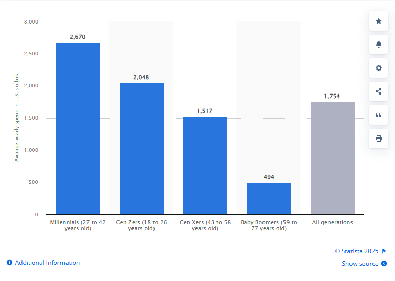 And then the fucking beauty care shit: Average yearly spend on beauty products in the United States in 2023, by generation. US consumers spend a whopping 89.7 billion on beauty products annually. !
