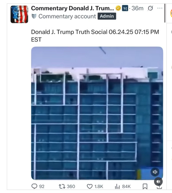 President Trump posted a new video on Truth Social featuring a compilation of videos of B-2 stealth fighter jets dropping bombs along with the 1980 song “Bomb Iran” by Vince Vance & the Valiants.