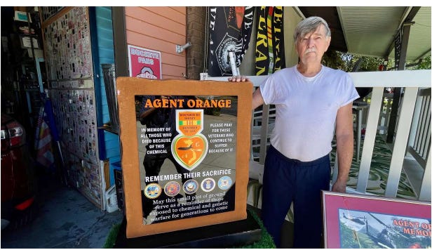 He had no inkling of its dangers at the time, but after he suffered a heart attack in 1980 at the age of just 32, he started suspecting something was up. He suffered more ailments over the years, sowing his intense qualms with Agent Orange, and a head and neck cancer diagnosis in 2023 really jumpstarted his activism.