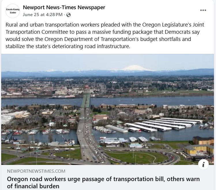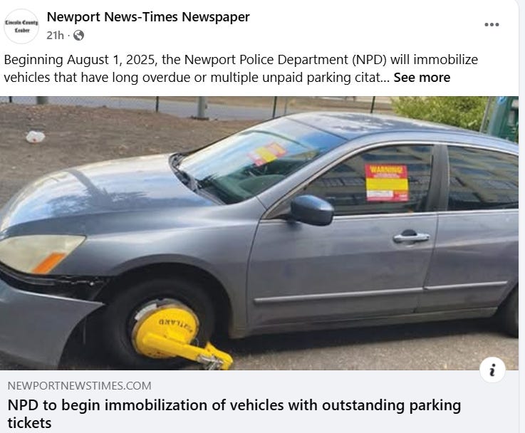 Just the Lincoln County, Oregon, where I live — Taking out our transportation because of unpaid fucking parking tickets?