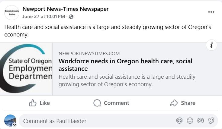 And, of course, the state of the State of Oregon, what great work opportunities — changing IV’s, cleaning bedpans, wiping drool off of old granny’s chin and putting compression socks on the old guy.