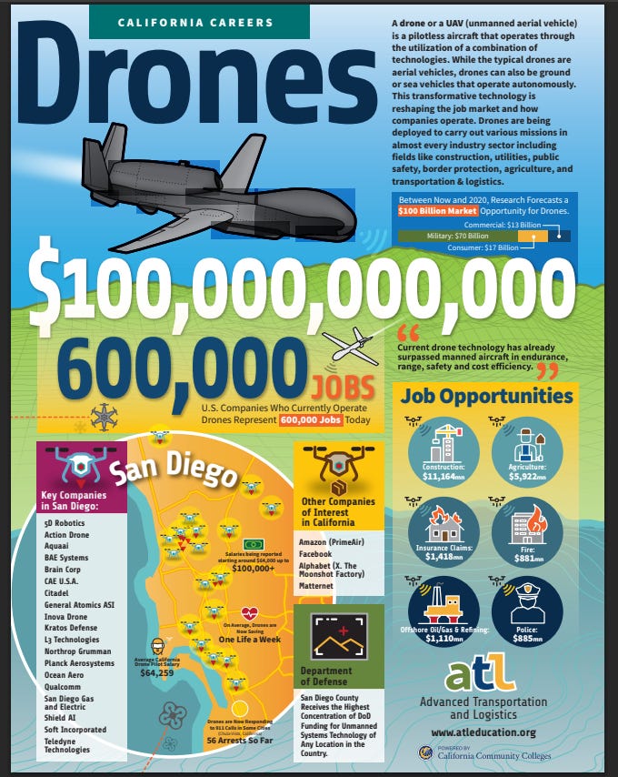 We all get folded into this evil machine, this war machine, at every level, even all those community colleges with drone programs! Here, from California, where Abby and her family reside: