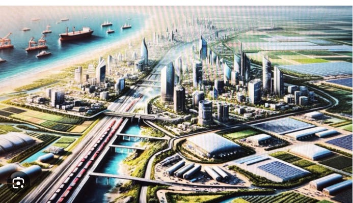 Concept for postwar Gaza from the project “Great Trust” in which the Tony Blair Institute participated to develop a postwar Gaza plan that envisaged kick-starting the enclave’s economy with a “Trump Riviera” and an “Elon Musk Smart Manufacturing Zone.” It proposed paying half a million Palestinians to leave the area and attracting private investors to develop Gaza..