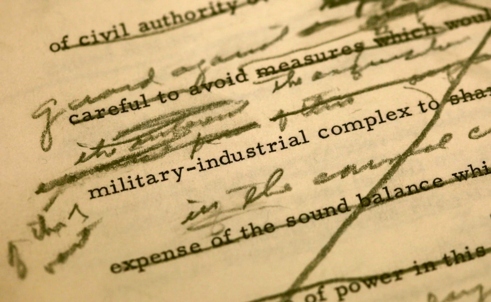 Yep, there goes the neighborhood: A draft of President Dwight D. Eisenhower’s farewell address shows changes made around a reference to the military industrial complex at the Eisenhower Presidential Library in Abilene, Kansas, the U.S., December 10, 2010.