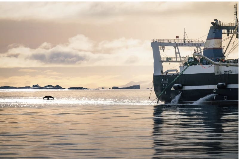 AP journalists traveled to the icy waters around Antarctica in 2023 and observed how factory ships trawl in close proximity to whales whose numbers are still recovering from a century of industrial culling that nearly drove them to extinction.