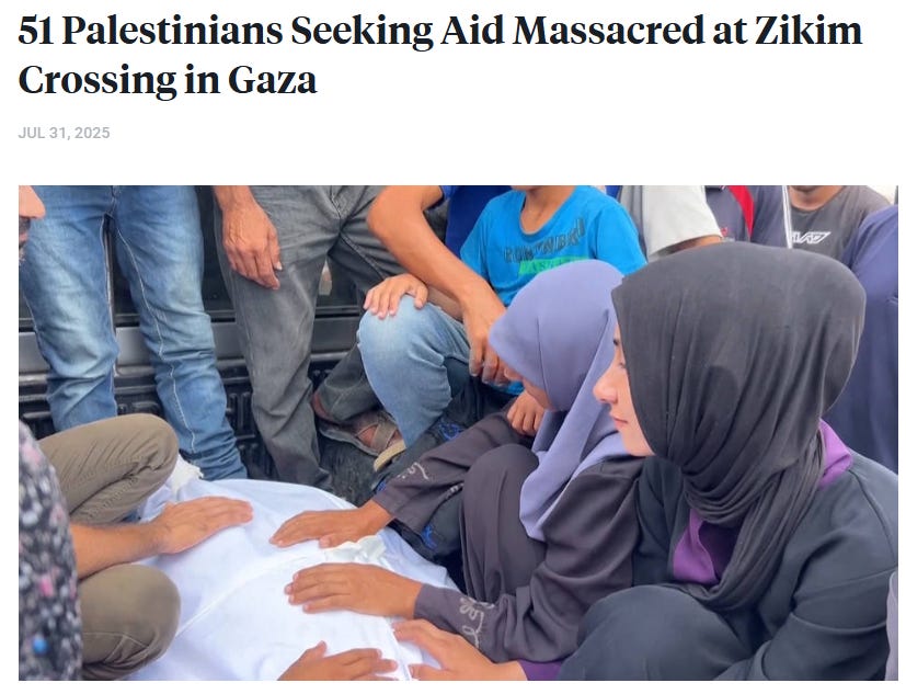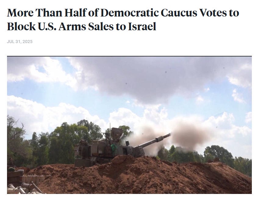 Sen. Bernie Sanders: “The United States has provided more than $22 billion for Israel’s military operations since this war began. Twenty-two billion dollars. One estimate, based on Brown University research, calculates that the United States has paid for 70% of the Gaza war. In other words, American taxpayer dollars are being used to starve children, bomb schools, kill civilians and support the cruelty of Netanyahu and his criminal ministers.”