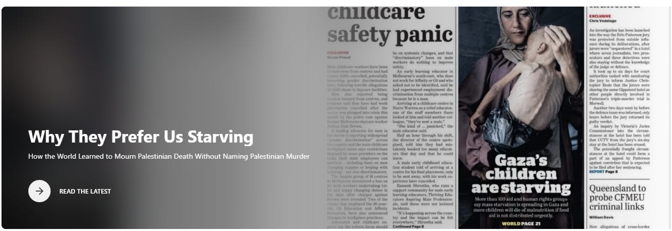 Every editor who cancelled stories on Palestine brought us here. The structural silence of the past two years is the real crime. Words do not feed Gaza’s children, do not rebuild hospitals, will not replace mothers who cradle bones where futures should have been. The narrative arc is shifting now, pushed by hunger that cannot be ignored, but moral cowardice remains: no arrests, no prosecutions, no real accountability.