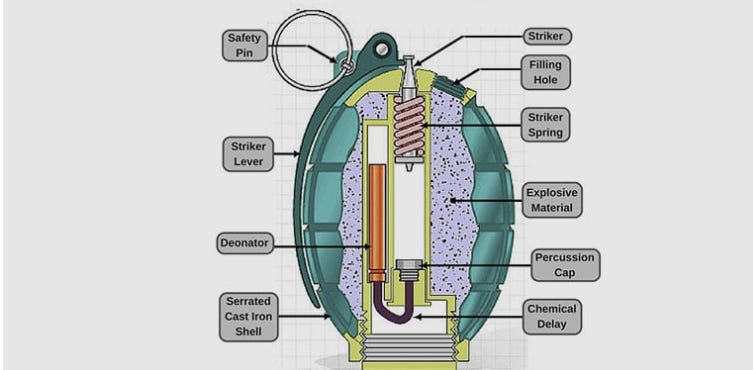 Certain crystalline materials (like quartz, Rochelle salt and some ceramics) have piezoelectric behavior. When you apply pressure to them, you get a charge separation within the crystal and a voltage across the crystal that is sometimes extremely high. It turns out one of your household appliances uses similar technology: In a grill starter, the popping noise you hear is a little spring-loaded hammer hitting a crystal and generating thousands of volts across the faces of the crystal. A voltage this high is identical to the voltage that drives a spark plug in a gasoline engine. The crystal’s voltage generates a spark large enough to light the gas in the grill. This same kind of technology can be used to detonate grenades and warheads.