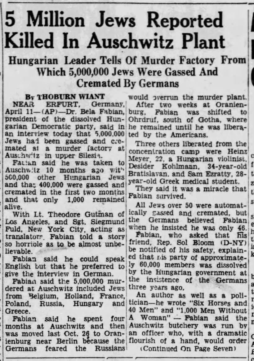 And so we are here — You believe the Jews and their cataloging and reparations filing and legal manuvering and that 6,000,000 Dead in Ohio?