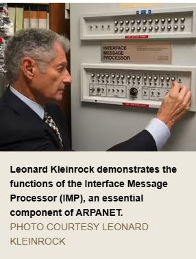 In August 1969, the UCLA team hooked up its host computer to an IMP, a Honeywell DDP 516 computer, making it the first of the four sites to connect into ARPANET. Within a few days, the two computers could exchange information. In October, Stanford’s team added the second IMP and host to the system. At 10:30 p.m. on October 29, the Stanford and UCLA computers communicated with each other over a 50 kilobit per second (kbps) phone line.