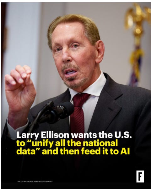 Jew Larry Ellison thinks the U.S. and other countries should be using AI more, but first, governments need to unify the data they collect on citizens into one easily digestible database.