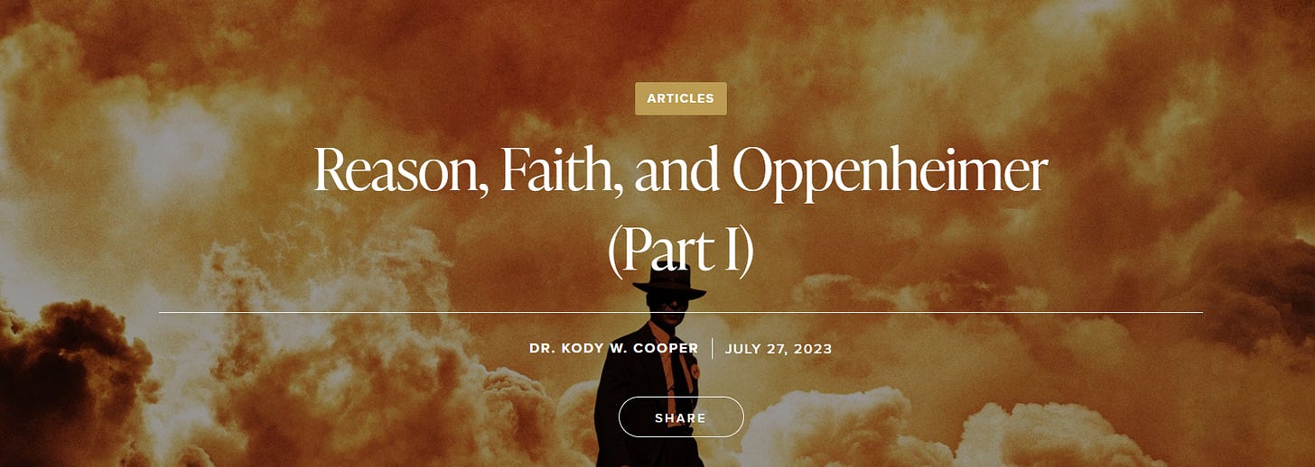 And, of course, the film explores the most pressing question at the center of Oppenheimer’s legacy, which has been debated for seventy-eight years: Should America have dropped nuclear bombs on Hiroshima and Nagasaki? In this two-part essay, I argue that Oppenheimer’s story, like the story of the bomb, is a case study in the perils of science and reason when they are decoupled from and untutored by faith and true religion.