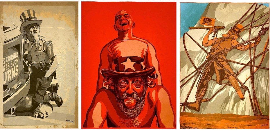 Mr. Fish pulls absolutely no punches. When questioned in the film about a particularly disturbing image of President Obama published by Harper’s magazine around the time the Martin Luther King monument was unveiled in Washington DC, he had this to say: