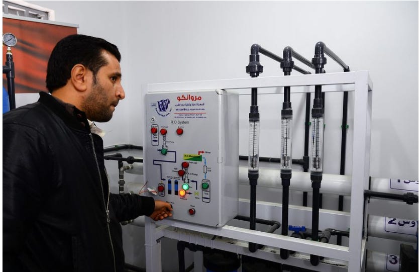 Palestinian man works at a China-funded water desalination plant in al-Naser village in the Gaza Strip’s southern border town of Rafah, on Jan. 8, 2020.