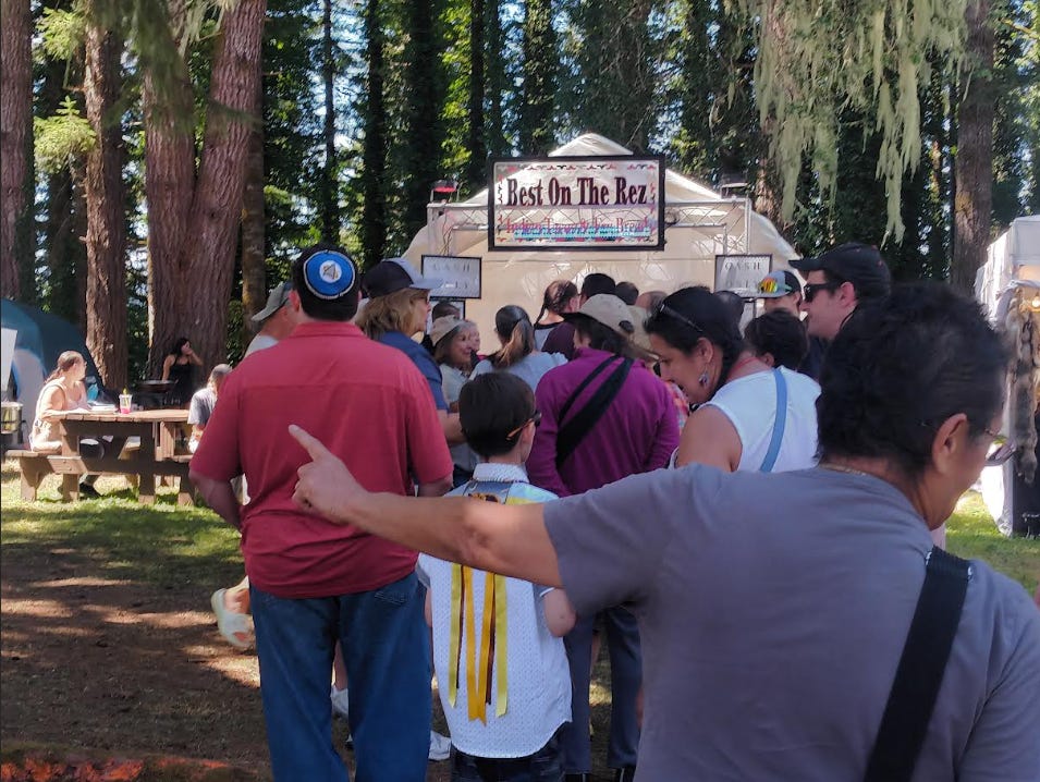 The parade today (2024) , in Siletz, going up to the Community Building and the Powwow grounds, was a typical floats and wavers kinda small town affair. I took a client there, a fifty-nine-year old who had never been to Siletz or to a Powwow. He lives in Newport, a mere 13 miles from the reservation.