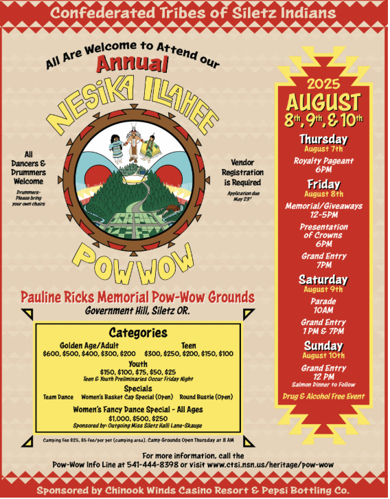 Chief George’s living descendants are not eating dead, rotted horses today. The future looks promising, though work remains. The Siletz River appears to be ill, with crawdads and other small food mysteriously depleted. The tribe has cooperated with a community group trying to stop the City of Newport from dumping sewage waste on fields adjoining the river, a practice currently being fought by concerned citizens across the nation. Fish runs in the river are slow and not nearly as abundant as in prior years.