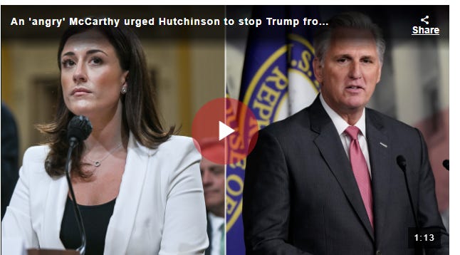 House Minority Leader Kevin McCarthy called Hutchinson on Jan. 6 to relay his concern that Trump would try to come to the Capitol after the then-president mentioned it on stage at the Ellipse rally, she testified.