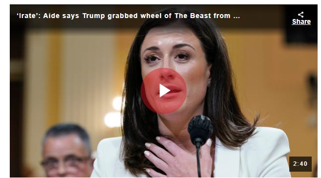 She said she heard from Ornato that Trump lunged for the steering wheel of the car and was physically restrained by the head of his Secret Service detail, Robert Engel.