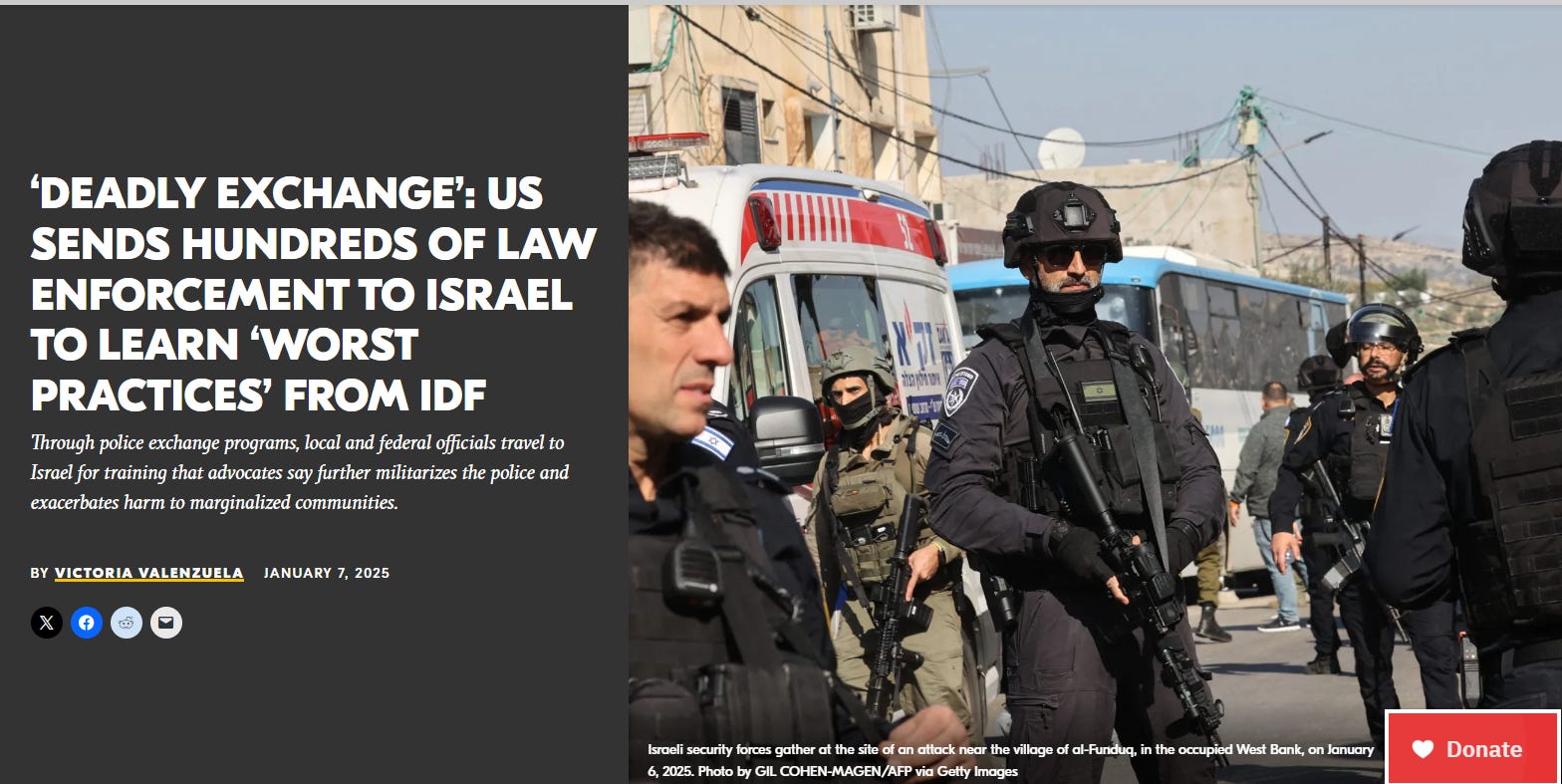 Two decades of Israeli-US police cooperation include training in racial profiling and violent suppression of protests.