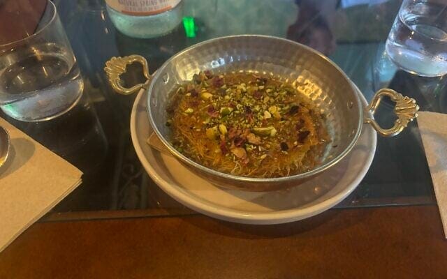 “We serve knafeh,” Maoz said, aware that many non-Israelis have never tried the traditional Arabic dessert made of needle-thin pastry threads and melted cheese soaked in sweet syrup.